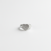 Anello chevalier dorato con placca nera e cuore centrale bordato da piccole sferette, dal carattere deciso e moderno, perfetto per dare un tocco bold e romantico a qualsiasi look.