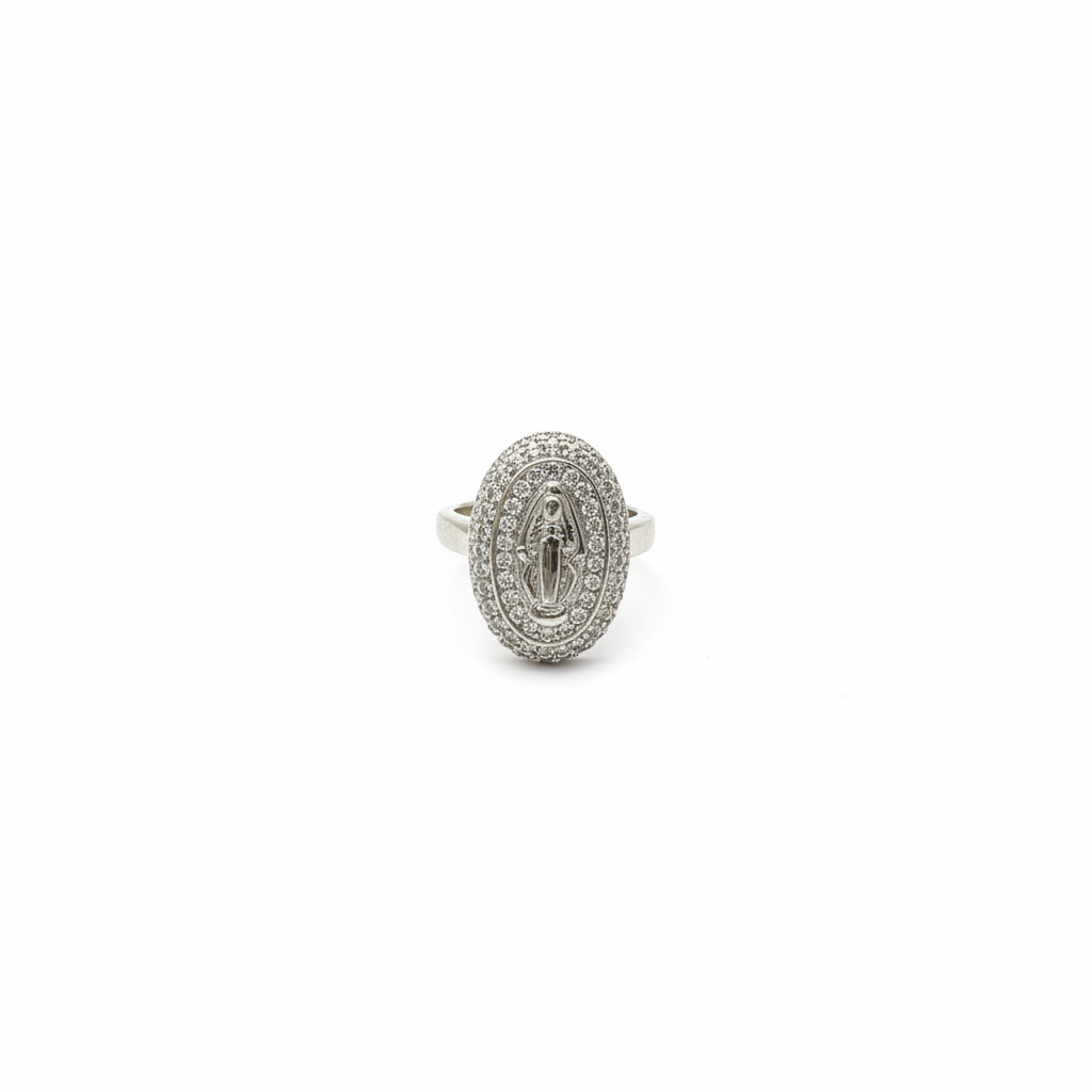 Anello regolabile in finitura argento con elemento bombato ricoperto di micro-cristalli, che crea un effetto cupola super luminosa, ideale come pezzo protagonista in ogni combinazione di anelli.
