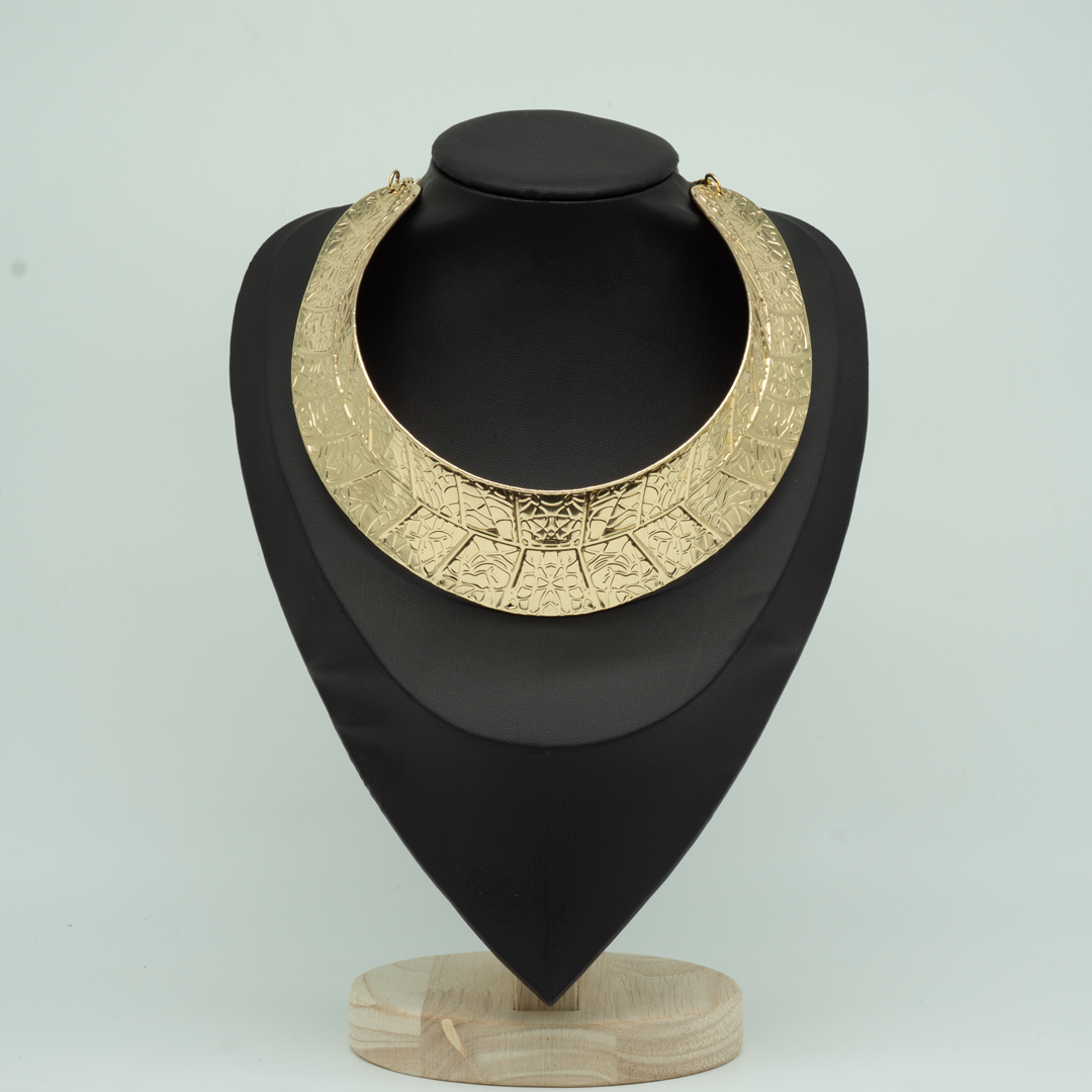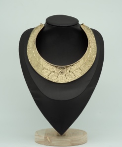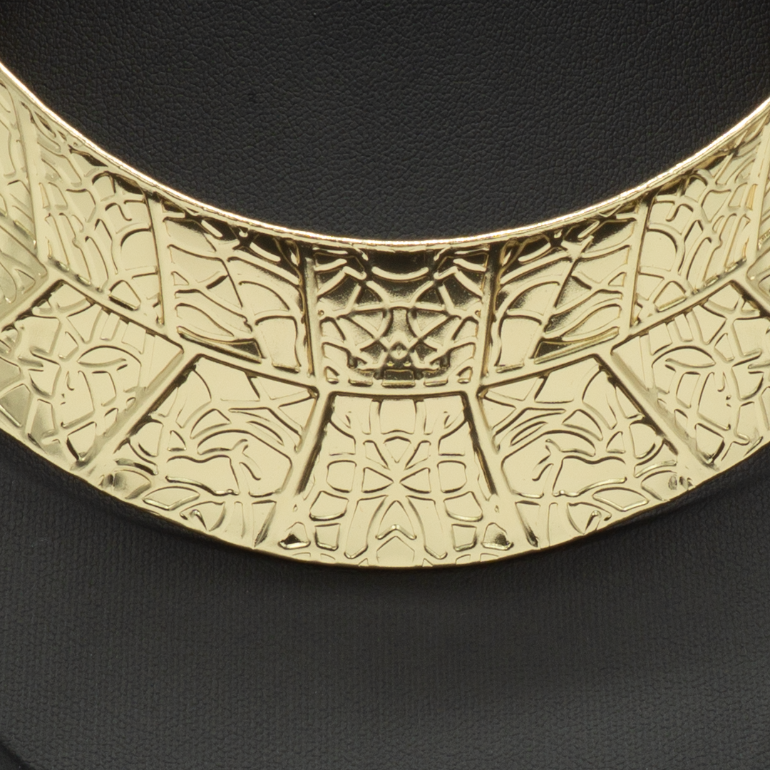 Collana rigida color oro, dal fascino maestoso e linee pulite. Ispirata ai gioielli dell’Antico Egitto, è un accessorio elegante e scenografico per look sofisticati.