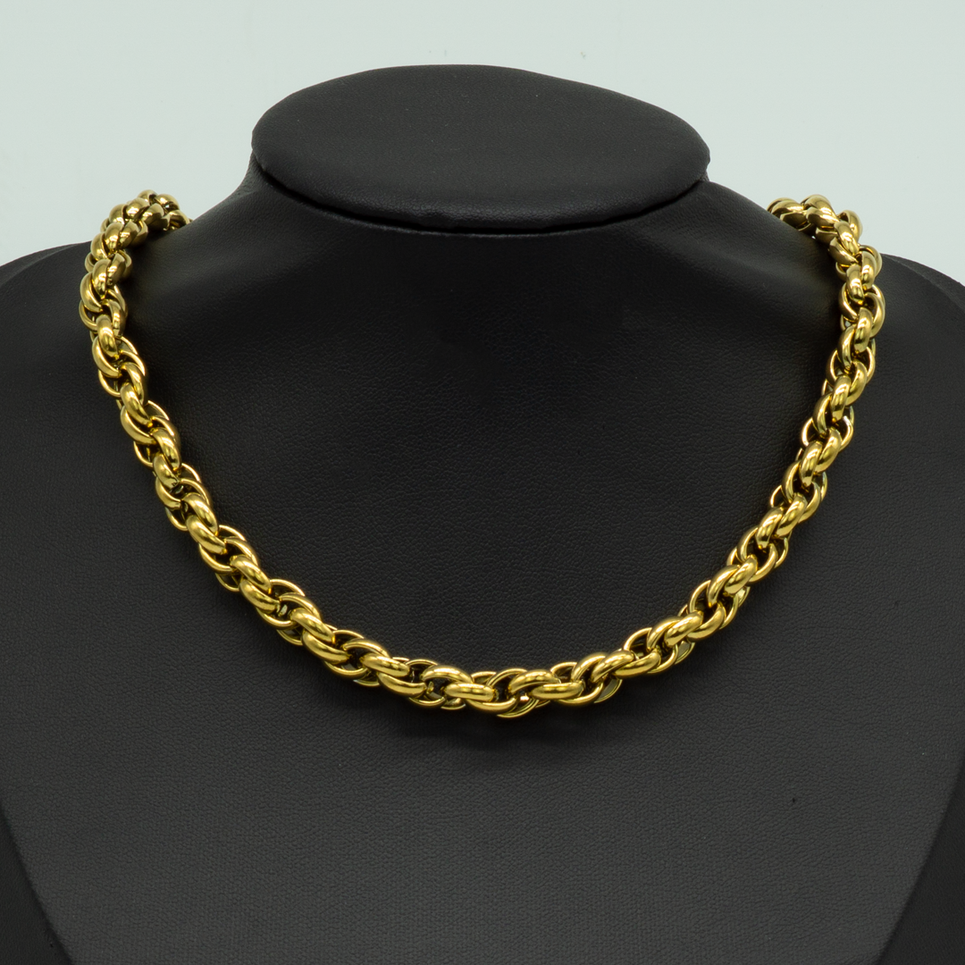 Una collana dal design intramontabile, caratterizzata da una catena luminosa che dona carattere e stile a qualsiasi look. La lavorazione delle maglie crea un effetto moderno e raffinato, perfetto da indossare ogni giorno o per completare outfit più ricercati. Leggera ma d’impatto, è un accessorio essenziale e sempre alla moda, ideale sia da sola sia abbinata ad altre collane per un look a strati.