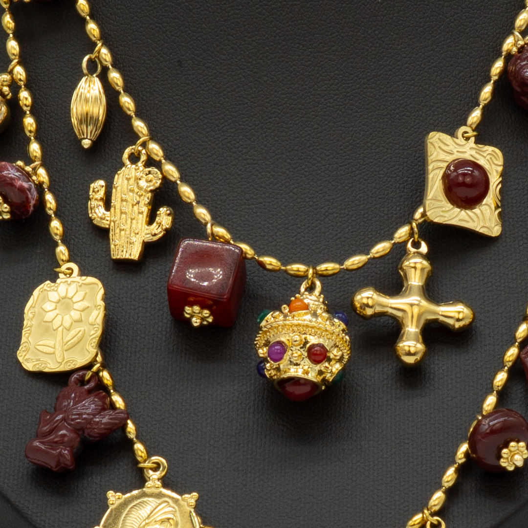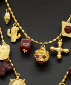 Collana dorata con charms rossi brillanti, dal design raffinato e moderno. Perfetta da indossare da sola o in layering per un effetto chic e sofisticato.
