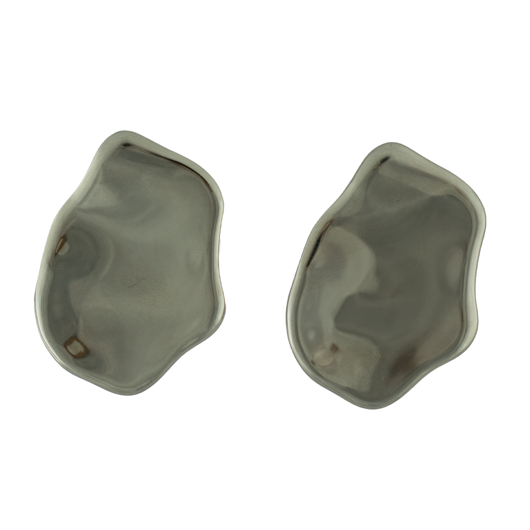Questi orecchini in color argento si distinguono per la loro forma unica e irregolare, che conferisce un tocco moderno e artistico. La superficie lucida cattura la luce ad ogni movimento, creando riflessi delicati e sofisticati. Leggeri e versatili, sono perfetti per chi ama accessori originali che valorizzino qualsiasi look, dal quotidiano a occasioni speciali.